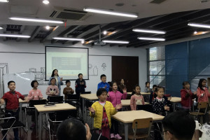 高老师用诙谐的语调和具有穿透力的声音,带着小朋友们以普通话口部操发声训练和形体、气息、发声训练为基础,结合丰富有趣的绕口令、即兴表达、趣味演讲、少儿主持等练习形式来讲解,综合提高少年儿童组织语言、表达语言能力的方式方法,并借此培养孩子们积极健康、乐观向上的良好行为习惯。讲座轻松愉快,内容妙趣横生。