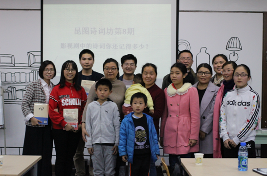 2018年12月1日,昆图诗词坊第8期活动在图书馆一楼读书乐基地举行。本次活动的主题是影视剧中出现过的经典诗词,吸引了约20位诗词爱好者前来参与。活动开始于当天下午14:00,结束于15:30,历时一个半小时,现场氛围热烈活泼,环节衔接紧凑互动性很好。