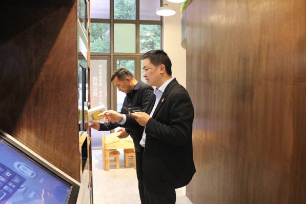 12月4日下午,应我馆邀请,市政协部分委员、市重点办和市委宣传部有关领导对我馆今年新建的两家24小时自助图书馆进行了参观、调研。市文广新局副局长周骁,市文广新局文化艺术科科长叶凤,市图书馆馆长金磊,市图书馆副馆长龚广宇,震川和青阳城市管理办事处有关领导陪同参观。