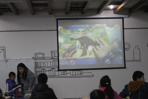 活动中老师借助平板电脑中的3D技术应用程序及3D立体书为小朋友们演示、讲解了恐龙方面的知识,小朋友们体验到了3D互动阅读带来的形象、生动的画面。恐龙知识互动问答、3D恐龙互动体验环节,小朋友们争先恐后参与其中,学到了很多恐龙知识。学习完知识后,就开始动手操作啦,两个小朋友一组,每组发放了一套模拟恐龙化石,小朋友们化身考古学家,分组成立小小考古队,对模拟恐龙化石进行发掘、清理、拼装,小朋友们各个充满干劲,场面热火朝天。
