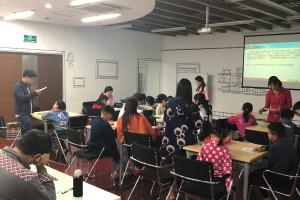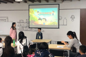 课程开始后,老师问了家长和孩子几个小问题,如“孩子最近最喜欢看的书”、“孩子最好的两个朋友名字”等,一起探讨了亲子阅读的重要性。在孩子与家长一起阅读《大灰狼学艺》故事后,老师要求大家分角色朗读并互相点评,孩子、家长都积极参与其中。