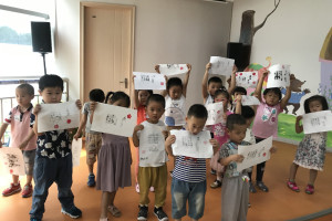 绘本分享后老师带领小朋友做了一个烛火实验,引导小朋友思考灭掉烛火的几种方法。然后老师为大家准备了宣纸,活字版,文房四宝,颜料,梅花印章。首先引导小朋友们怎么使用文房四宝,活字印刷,然后让小朋友自己体验磨墨,接着在活字版上刷上墨汁,最后将宣纸平整的铺在活字版上,用刷子轻轻地刷一刷,印好后,取出宣纸,最后用梅花印章印在作品上。