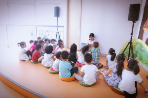 活动开始老师带领小朋友在充满活力的音乐中热身后再开始绘本分享。