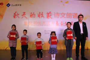 活动首先对2019年度昆山市图书馆少儿优秀读者代表、成人优秀读者代表和优秀志愿者颁奖。接着举办了“秋天的收获”诗文朗诵会。