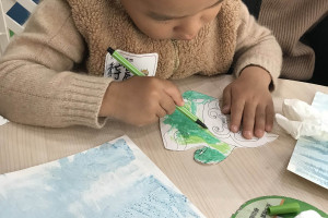 活动开始老师带领小朋友在充满活力的音乐中热身后再开始绘本分享。京剧是中国的国粹,《长坂坡》是借用京剧中的经典剧目,配以京剧猫们的可爱形象,给小朋友们耳目一新的感受。绘本立意根源于中国传统文化和东方哲学,将现代儿童不熟知的故事,通过改变和再创造的手法再现,用现代、简练、纯真、有着幽默感的语言进行表达。这个绘本既有三国演义的故事情节,又有京剧的生旦净末丑脸谱,还有着现代绘本的叙事方式。这既是传统的,又是现代的,既是民族的,又是世界的。