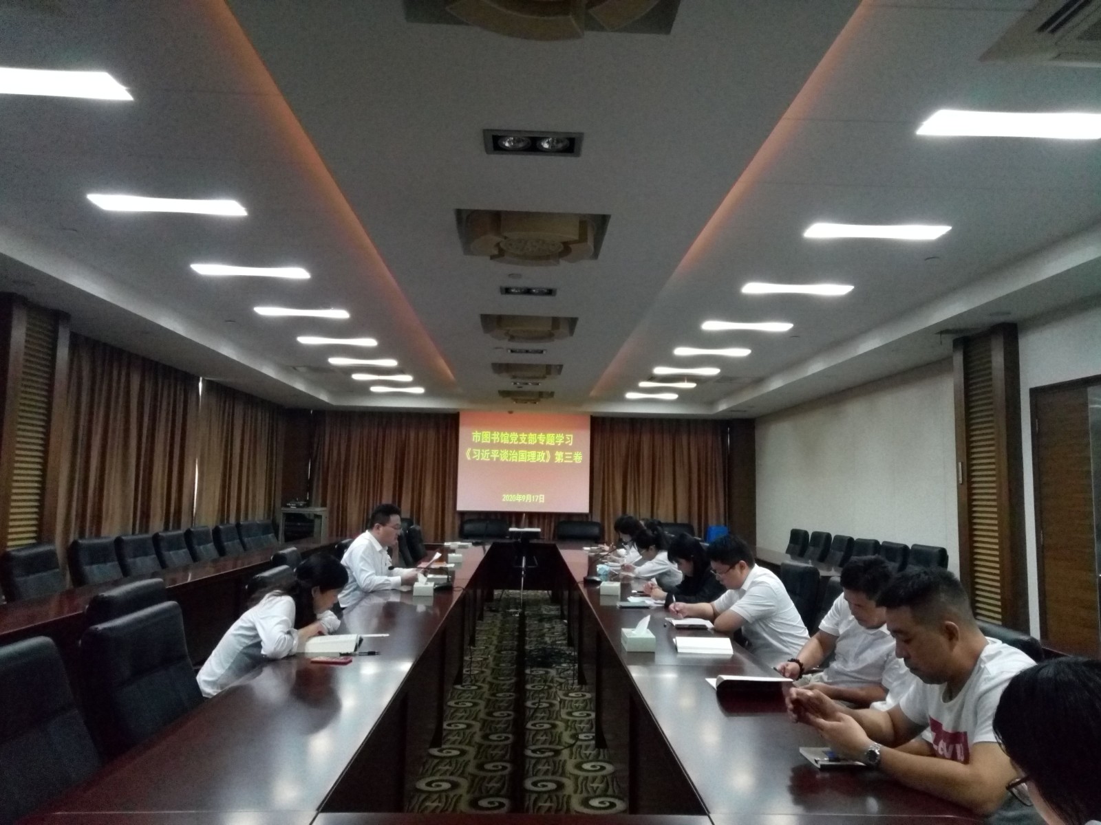 2020年9月17日下午,昆山市图书馆党支部召开专题学习《习近平谈治国理政》第三卷党员学习会议。