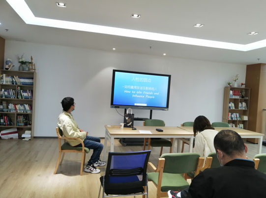 10月25日下午2点,昆图读书会第109期在我馆五楼活动室举办,分享主题是《人性的弱点》,分享嘉宾是资深会员王兴兵,共有8名书友参加了此次活动。