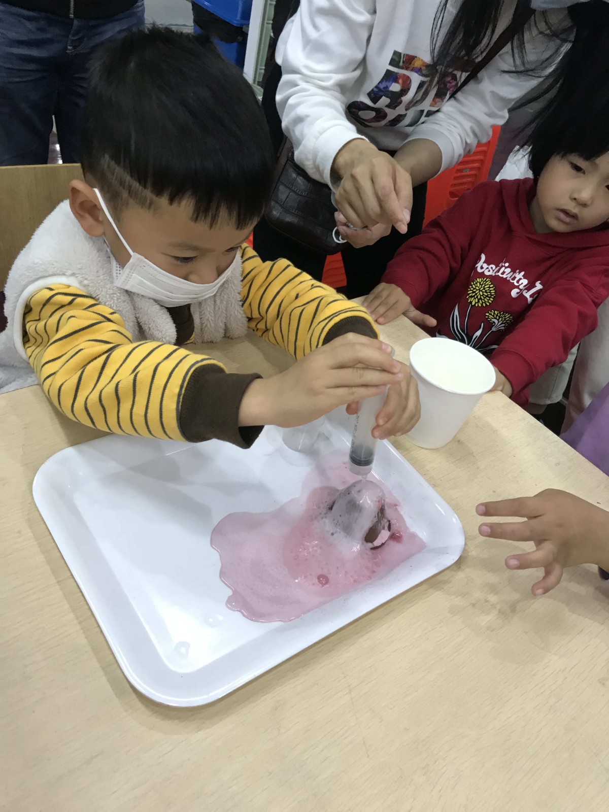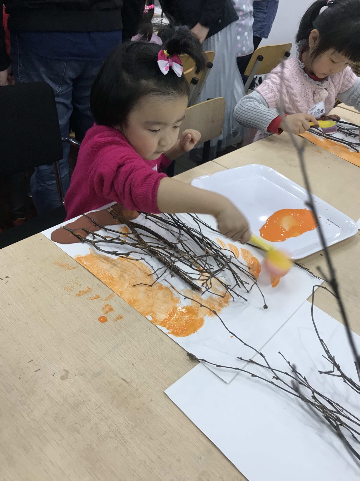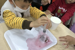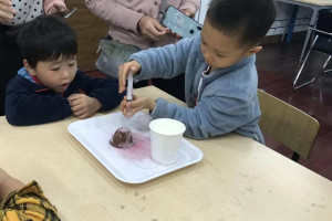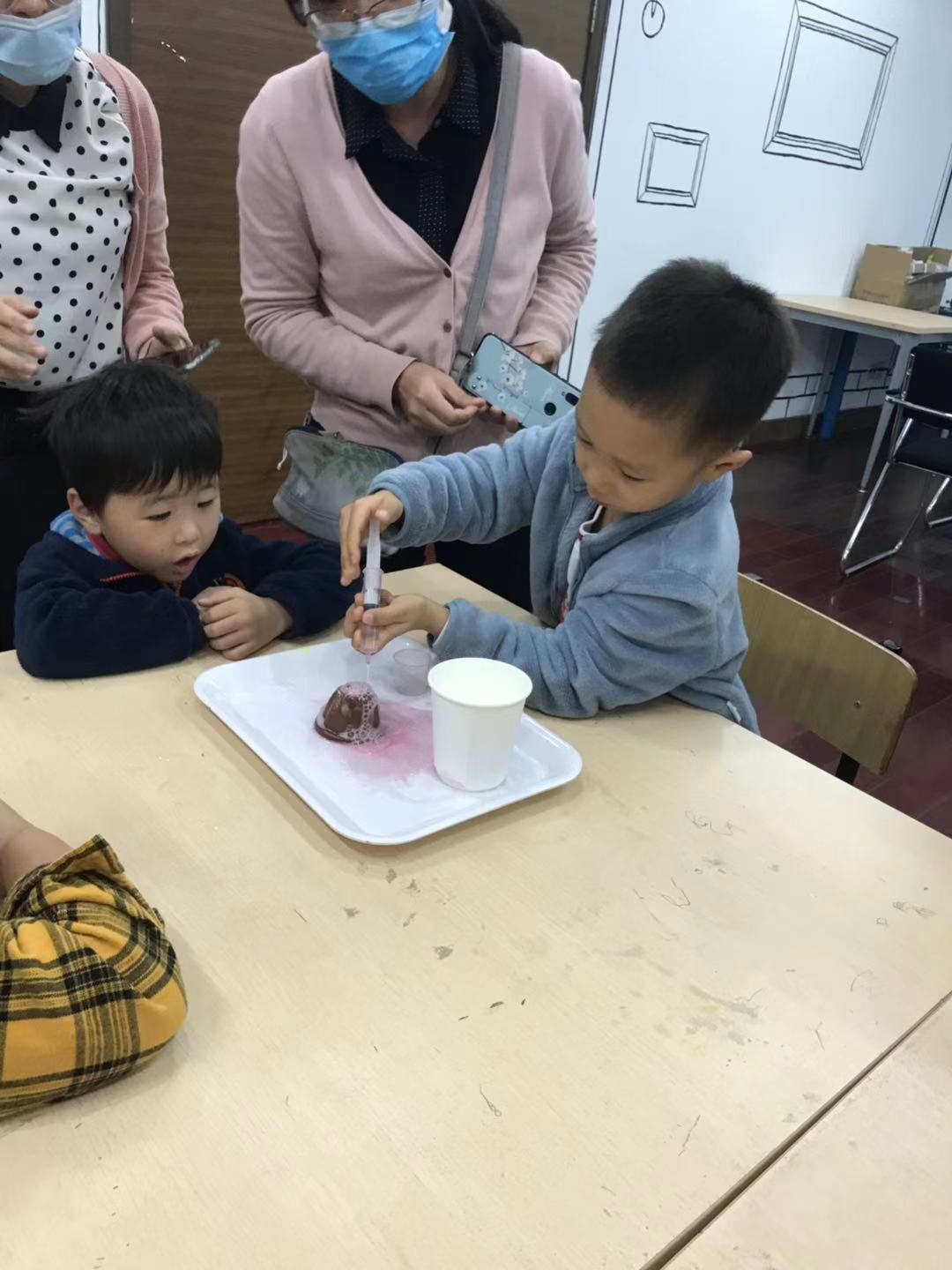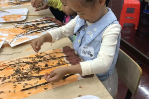 绘本分享后老师让小朋友认知小型灭火器和观察火山喷发的过程,引导小朋友了解消防安全的标志含义和作用,增强幼儿的安全防护意识。让小朋友自己动手用枯枝制作做一幅火灾中的森林的场景,培养孩子的动手能力、给家长展示自己的作品并阐述,让小朋友在收获与分享中感受到消防安全的重要性。