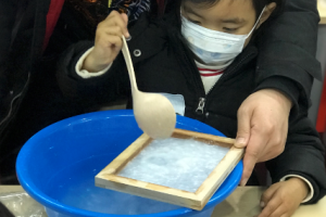 绘本分享后让小朋友了解造纸术的历史和故事。引导孩子们了解造纸术是中国最伟大的发明之一,是古代劳动人民长期经验的积累和智慧的结晶。让小朋友自己动手创作一幅利用花草造出的纸。古老的造纸术象征着历史和传承,本次活动不仅培养了孩子的动手能力,还让小朋友在收获与分享中感受到古人的智慧。