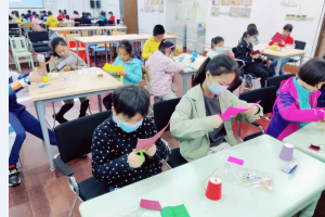 待现场气氛稍微冷静下来,老师又对声音的最后一个要素“音色”进行了讲解。不同的发声体由于其材料、结构不同,振动发出的基音及泛音不同,因此声音的特色也不同。人声分中、高、低音,器乐又分为弦乐、管乐以及打击乐等多种类,活动现场小读者们用硬卡纸及橡皮筋自制了小吉他,通过弹拨橡皮筋发出的声响进一步了解到吉他的发声原理:手指拔动琴弦,琴弦开始振动,并传给琴码和面板。面板与琴身的共振压缩共鸣箱里的空气振动产生声波,声音便通过背板的反射从音孔传出。小读者们收获颇丰。