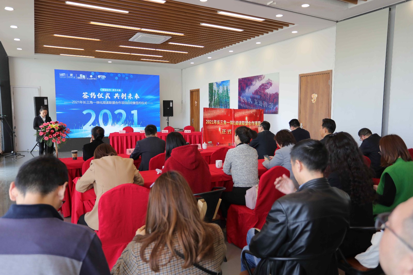 仪式上,青浦、昆山、太仓、吴江、嘉善五地图书馆共同签订了《2021年长三角一体化阅读联盟项目合作协议》,通过平等自愿、友好协商、共同发展的原则,积极开展阅读推广服务的共享和馆际业务的交流,促进公共文化事业的发展。