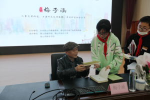 最后,梅教授以自己的原创诗《十三岁的走廊》作为讲座的礼物,送给台下这群即将走向中学的大孩子们,让孩子们深受感动。