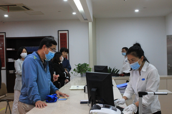 馆领导带领台胞参观了办证大厅、报刊阅览室、视障阅览室、自助借阅室、综合借阅室、少儿室、参考阅览室(台胞阅览室)、百年馆史展等地方,了解了图书馆的发展历史、馆藏布局、书刊借还、24小时自助图书馆、移动图书馆和电子资源的使用及阅读活动品牌等方面。台胞还现场办理了读者证,他们反映“通过台湾居民居住证直接办理读者证只花了1分钟,而且还可以利用网借服务在家借书,十分便捷”。