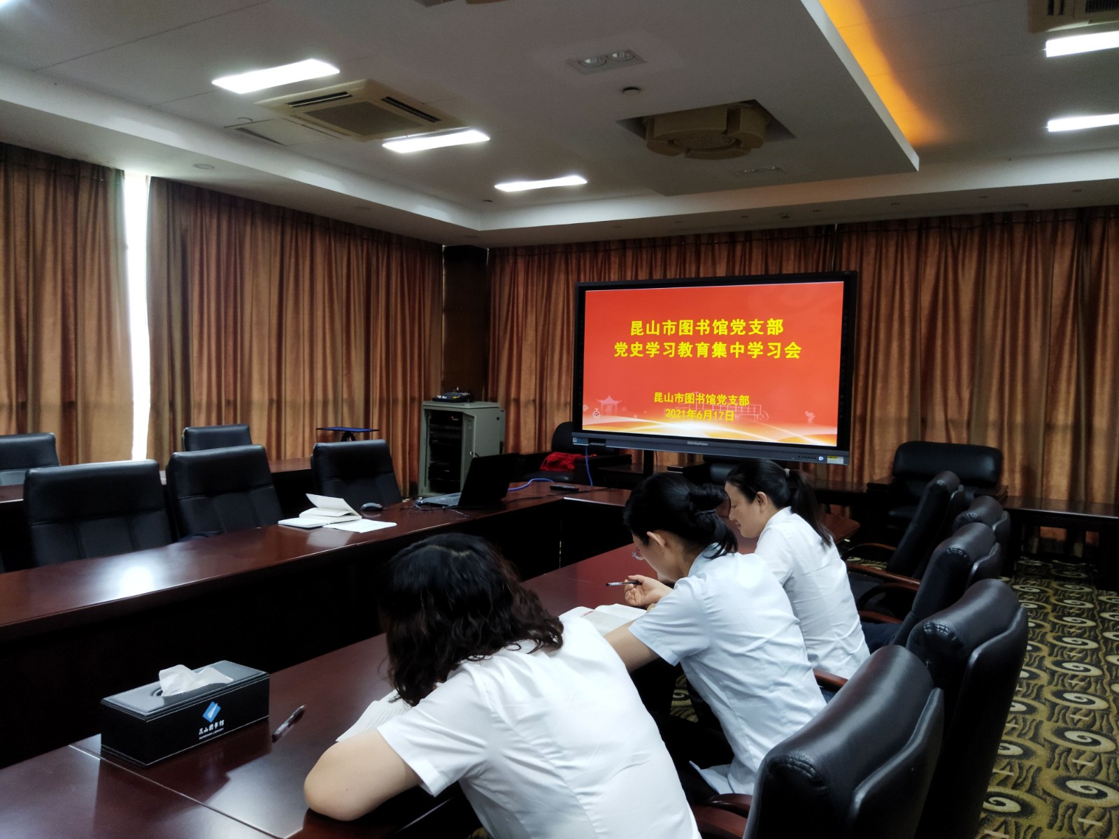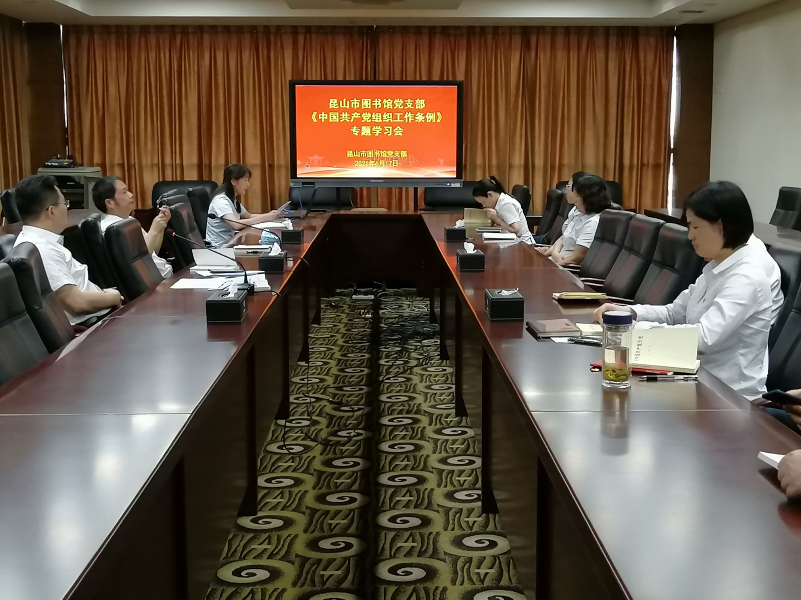 为庆祝中国共产党成立100周年,扎实有效开展党史学习教育,昆山市图书馆党支部于6月17日下午召开了支部党员大会,开展了党史学习教育集中学习会暨《中国共产党组织工作条例》 专题学习会。