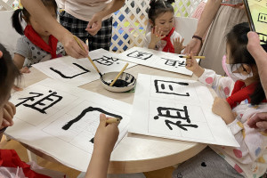 绘本分享后先让小朋友们学习系红领巾。佩戴红领巾是中国少年先锋队的标志。接着让小朋友们练习在红色田字格里画上祖国二字,来表达自己对祖国母亲的爱。这场活动让小朋友们在收获与分享中感受传统的爱国主义情怀。