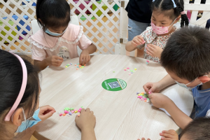 绘本分享后,让小朋友练习精细动作——串珠训练,以提升孩子手眼协调能力及注意力。让小朋友尝试绘制一幅自己喜爱的幼儿园图画,给家长展示自己的作品并阐述,让小朋友在收获与分享中慢慢喜欢上幼儿园。