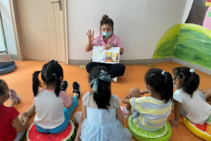 活动开始后,老师带领小朋友们在充满欢快,动感的音乐中进行热身后再开始绘本分享。