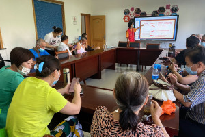 本次课程,志愿者在上次培训的基础上针对微信进行了重点讲解,通过PPT讲解和手机操作指导相结合的方式一步步教老年人如何使用微信添加表情包、微信接龙、新建聊天群、发朋友圈及点赞评论等。对于实操有困难的“大龄学员”,志愿者们通过一对一、手把手教学,帮助其快速掌握操作方法。课堂气氛非常活跃。