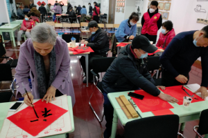 为保障老年人基本文化权益,弘扬中华民族敬老、爱老的传统美德,2022年1月18日,昆山市图书馆在一楼读书乐基地举办“墨香四溢迎新春,壬寅送福送春联——写春联,品书香”活动,在喜迎新春的气氛中感受中华书法文化的传统魅力。
