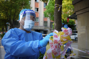 4月6日,陆家镇邵村南苑小区发现无症状感染人员而转入防疫管控状态。在紧急任务面前,昆山市文体广电和旅游局迅速集结了以党员为骨干的40名志愿者,于当日进驻陆家开启封闭下沉支援任务。昆山市图书馆派出七人先行小队加入组织,与文体广旅局各位同仁“疫”路披甲逆行,并肩战“疫”。