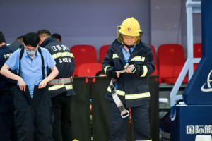 比赛结束后现场还组织了特定场馆突发事件消防演练,由专业消防救援人员为大家演示了场馆火灾发生后如何处置火情、救援被围困的群众。消防救援人员的精彩演示赢得了现场观众的热烈掌声。