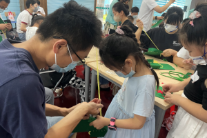 首先是音乐互动环节,目的是让小朋友们尽快进入绘本讲读的情景中。接着老师开始绘本故事分享,《为人民服务》讲述了战士张思德同志的一生,他在平凡的岗位中默默奉献,忘我工作,直至光荣殉职。听了这个绘本故事,小朋友们纷纷表示长大后也要向张思德一样为人民服务,做好每一件工作。手工环节是制作不织布爱国包,小朋友们一针一线,专心致志地缝制自己的手工作品,也把对解放军、对祖国的爱融入进自己的作品中。