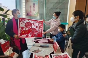 年节里,除了门上喜庆吉祥的春联,还少不了美丽的窗花。窗花是我们中国传统的民间艺术,是一种镂空艺术,其在视觉上给人以透空的感觉和艺术享受。民间艺人刘彦英老师给读者示范剪窗花,一把剪刀,一张红纸,伴随着 “咔嚓”声,栩栩如生的小兔子、福字、“春”字……一张张寓意美好、风格独特的窗花活灵活现地展现在读者面前。许多读者围在民间艺人刘彦英老师身边,聆听着窗花文化,观看刘老师剪窗花的过程,欣赏大幅“民族情 心连心”“祖国风华正茂”等剪纸作品,惊叹于窗花这门传统艺术的魅力,对传统文化产生了浓浓的兴趣。