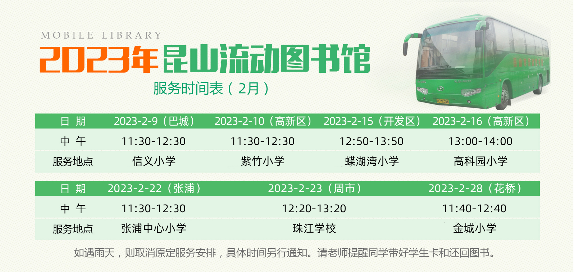 2023年昆山流动图书馆服务时间表(3月)