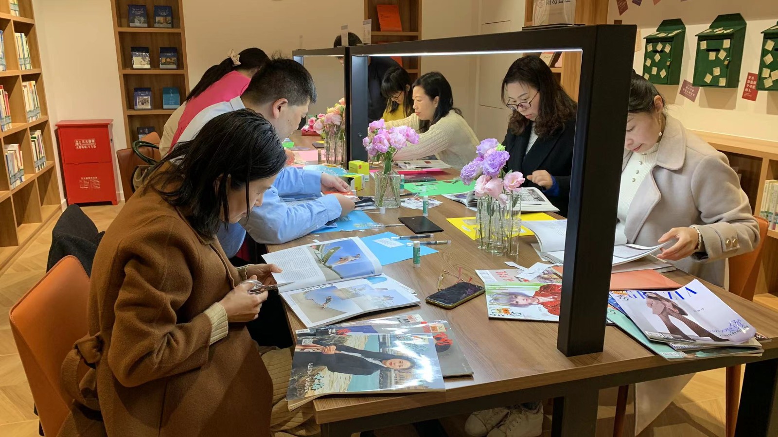 与此同时,我们邀请到馆读者参与了“邮寄读书日定制明信片”、“创作我的拼贴诗”、“阅读第111页”等读者活动。大家纷纷在读书日的定制明信片上写上关于读书的想法,邮寄给亲朋好友。一位老先生认认真真地写下对远在外地的儿孙的思念,并嘱咐他们要“读万卷书、行万里路”。而拼贴诗活动将本次活动推向高潮,每位读者都打开脑洞,一边构思一边创作,创意与灵感迸发,各自都展示出了优秀的作品,大家互相交流、评点、分享,活动现场氛围十分热烈。