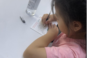 绘本故事后,我们带领小朋友们通过写明信片的形式,给远方的家人、朋友,或是想念的人,写上一段话,亲自去邮政厅外的邮筒投递,寄出自己的祝福。