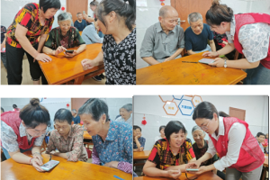 “大家打开微信,点击右上角的加号,用其中的‘扫一扫’扫描二维码就可以添加好友啦。”活动中,社工为社区老人讲解智能手机使用方法。通过PPT演示和实际操作,向老年人展示WIFI连接、微信注册登录、添加好友、聊天等操作方法。