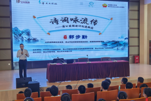 活动中,昆图朗诵团副团长郭步勤老师从什么是朗诵、古诗词的朗诵特点,并以《枫桥夜泊》、《望庐山瀑布》、《过故人庄》三首古诗词为例给同学们讲解如何朗诵古诗词。