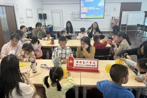 手工环节:制作一束美丽的鲜花献给妈妈,孩子们在家人的陪伴下一边做手工,一边回顾着故事内容。