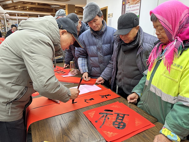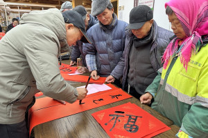在活动现场,中国书法家协会会员、昆山市青年书法家协会副主席史经伟老师现场挥毫泼墨,书写春联和“福”字,并免费赠送给在场的村民,为大家送去了新春的祝福。村民们表示,书法家来到农村送祝福是文化惠民的具体体现,希望以后经常开展这样的活动。
