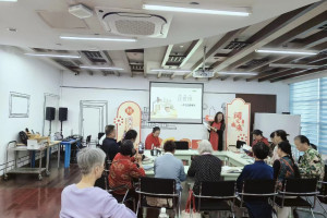 活动伊始,工作人员简要介绍了世界读书日的意义,随后特邀讲师於洪玲老师以“一个有趣的老头”为引,生动讲述了作家汪曾祺的生平和创作风格。从"人间烟火最抚人心"的生活哲学,到"一草一木皆有情"的细腻笔触,於老师用通俗易懂的语言,勾勒出这位文学大家如何在平凡中见真趣的独特魅力。随后於老师选取书中名篇《昆明的雨》,带领大家逐句细读"淡而有味"的语言艺术。活动尾声,老年读者们意犹未尽,围着於老师讨论:“原来写日常小事也能这么美!”最后,大家手捧书本合影。