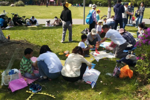 4月26日下午两点,自助图书馆森林公园分馆旁的草坪上洋溢着欢声笑语,"我和春天有个'阅'会"亲子绘本共读活动在此温馨举行。此次活动吸引了16组家庭共计40名读者热情参与,通过亲子共读与手工风筝制作的结合,让阅读与春天的美好邂逅在亲子互动中绽放光彩。