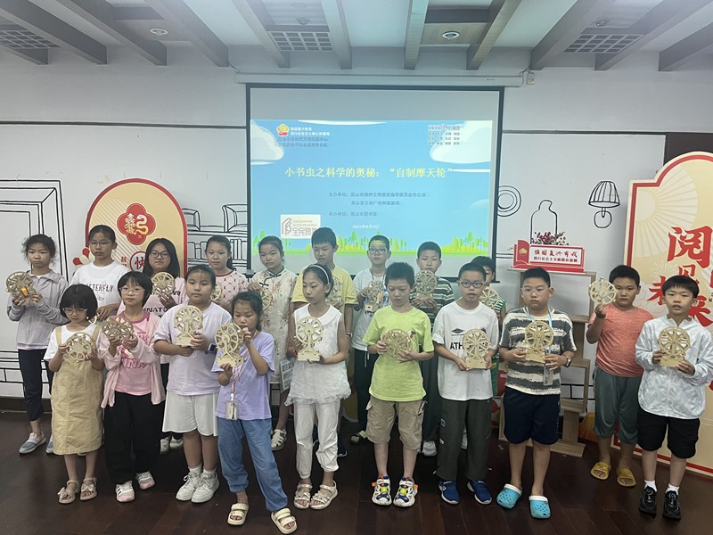 2025年8月3日下午2点,小书虫之科学的奥秘活动在昆山市图书馆顺利开展,本次活动以“自制摩天轮”为主题。