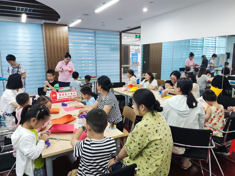 手工环节:用彩纸、超轻土和胶带拼贴一束花送给老师,小朋友们在家人的陪伴下一边制作,一边回顾故事内容。