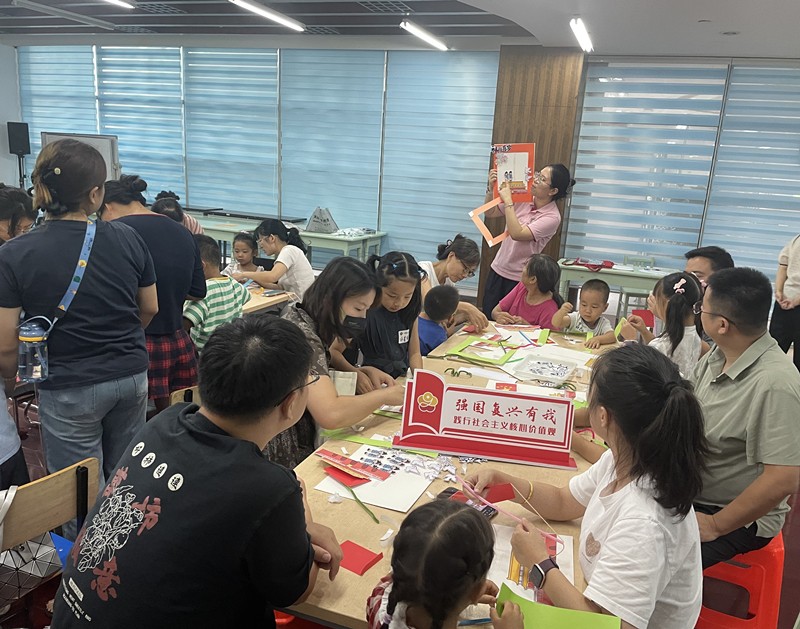 手工环节:用造型纸、胶水、吸管和细绳创作一幅升国旗作品,小朋友们在家人的陪伴下一边制作,一边回顾故事内容。