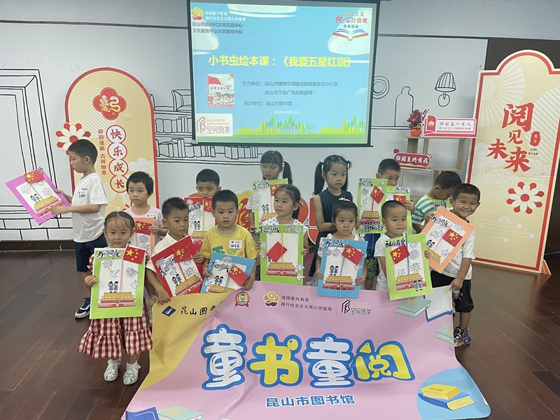 2025年10月12日上午10点,昆山市图书馆举办了小书虫绘本课活动《我爱五星红旗》。