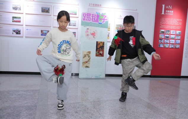 “文化喜乐会”区域设置了跳房子、踢毽子、投壶等传统游戏,配合展板介绍其历史文化背景,让市民在游戏中感受传统文化的魅力。家长与孩子一起参与,其乐融融。