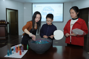 多功能厅举行的非遗体验课——漆扇制作吸引了大量市民参与,活动采用“微讲座+沉浸体验”模式,让读者在动手体验中了解非遗文化。