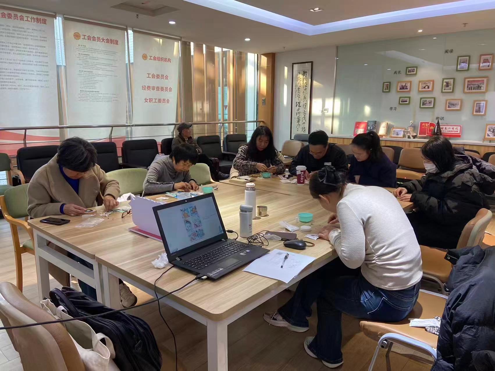 随后,诗友们动手制作独具创意的冬日茶杯垫。大家挑选图案,细心制作,一步步将将诗词的意境转化为手中的创意,留存了一份亲手创造的温暖与美好。