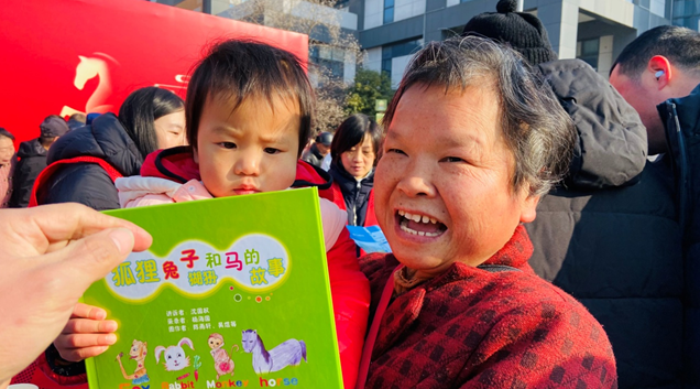 昆山市图书馆向张浦镇赠送了细心挑选的300册图书,涵盖农业科技、养生保健、文学名著等多个门类,紧贴村民生产生活与阅读需求。此外,图书馆还将书签、帆布袋等特色文创产品,以及详细介绍图书馆服务资源的宣传册,免费发放到村民手中。绘本《狐狸兔子猢狲和马的故事》也深受小朋友们的喜欢。