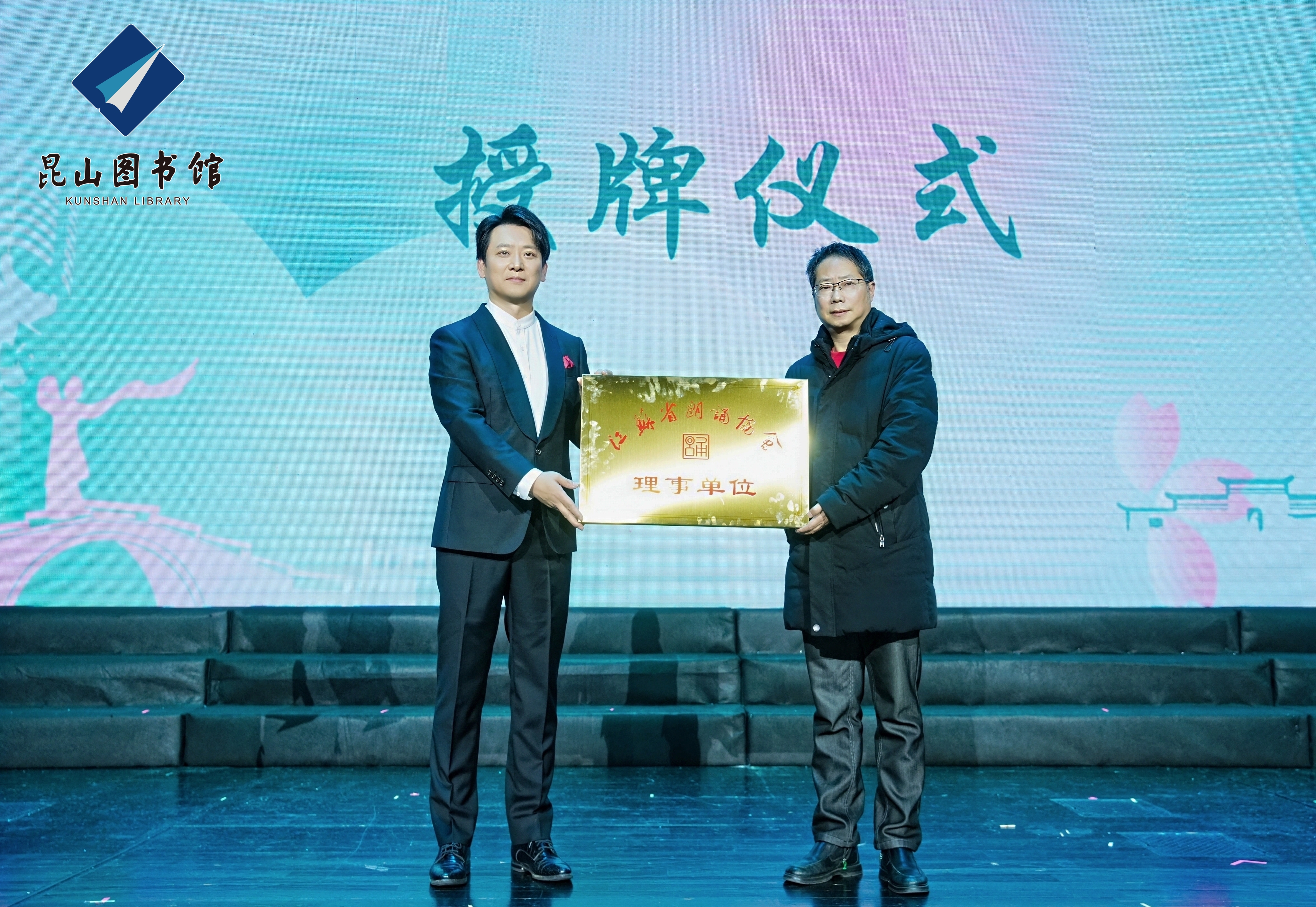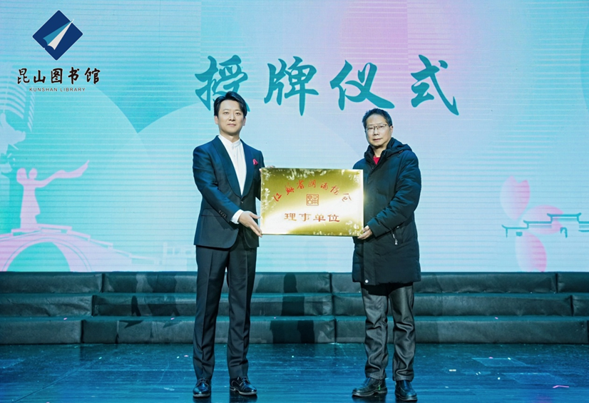 前不久, 昆图朗诵团当选为江苏省朗诵协会理事单位。活动现场,江苏省朗诵协会秘书长傅国为昆图朗诵团授牌。标志着昆山市图书馆在全面阅读推广和朗诵艺术推广方面迈上了新台阶。