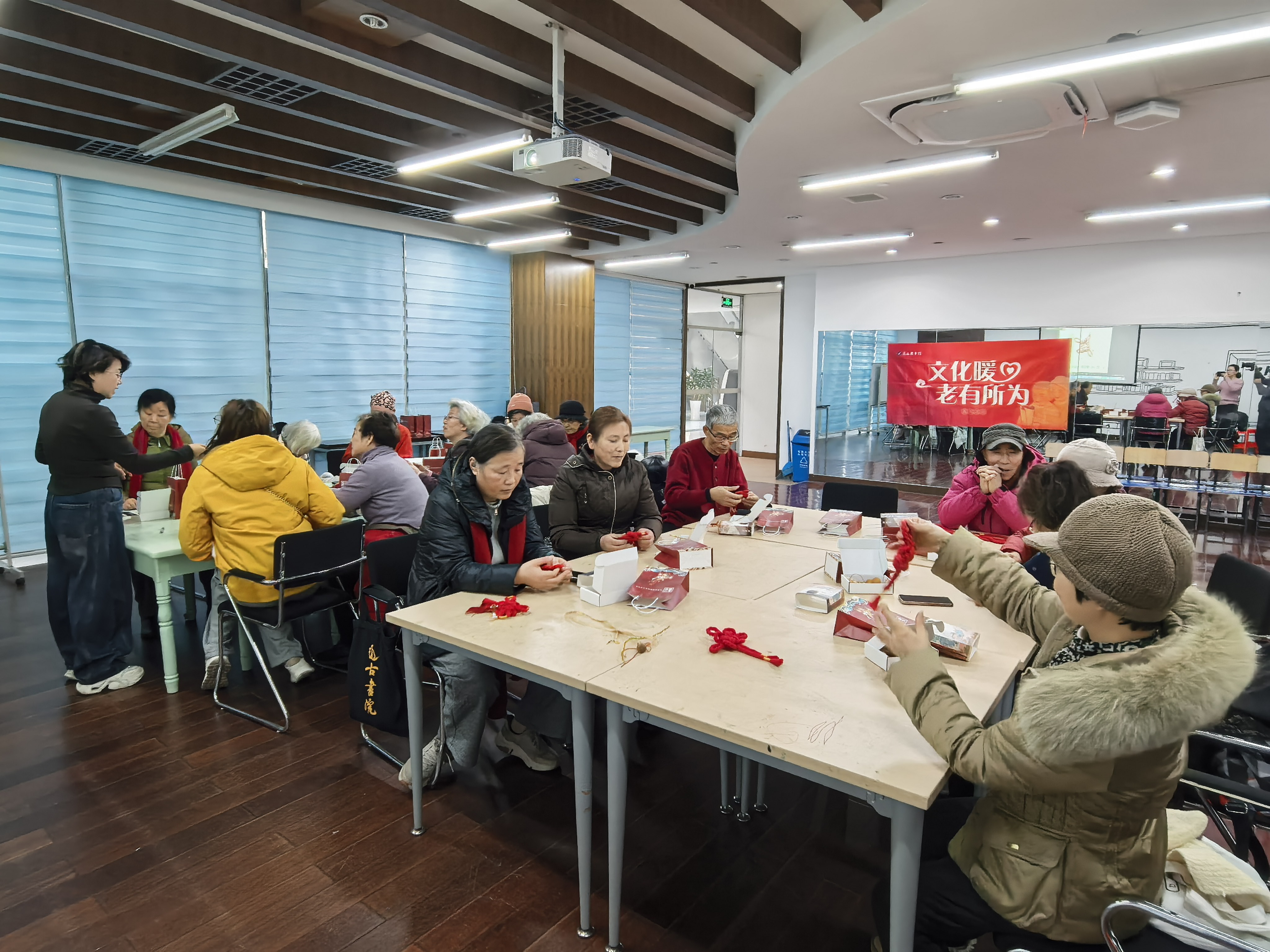 腊月年味浓,文化暖人心。2月7日下午2点,“文化暖心,老有所为”第19期:情暖新春·书香结缘—昆山绳结技艺体验活动,在昆山市图书馆一楼读书乐基地举办,本次活动共吸引了16位老年读者热情参与。