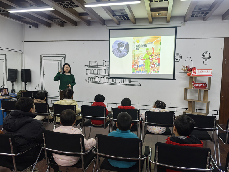 “为什么会有学习雷锋纪念日?”“我们为什么要向雷锋叔叔学习?”活动伊始,老师以提问开场,带领孩子们从《学习雷锋好榜样》这首传唱不衰的歌曲出发,探讨其背后的意义。随后,老师与孩子们一同阅读了绘本《永远的榜样雷锋》。书中生动描绘了雷锋从一个苦孩子成长为一名光荣的解放军战士,并在平凡岗位上做出不平凡事迹的历程。故事让孩子们明白,榜样并非遥不可及,雷锋精神就体现在日常生活的点滴善行之中。