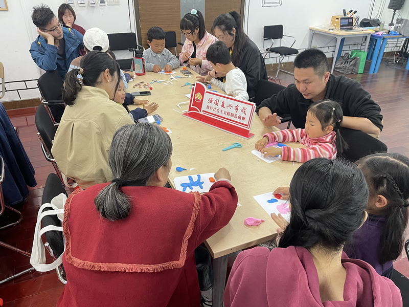 共读的感动延续到手作环节,孩子与家长用卡纸、粘土、小珍珠和丙烯笔等材料制作春日主题书签,将故事中的温暖具象为花朵、绿叶与小动物。这枚小小的书签,会成为日后翻开书本的“记忆开关”,提醒他们曾与家人共度阅读点亮彼此的午后。