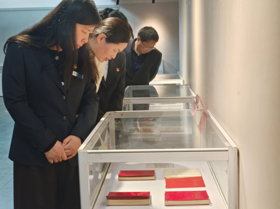 全体党员还前往二楼琼花艺苑展厅,参观“蔡琨先生革命文物收藏展”。展览集中展出多语种版本《共产党宣言》、革命先辈照片手札、签名著作等数百件珍贵革命文物,大家驻足凝视、认真聆听文物背后的红色故事,在沉浸式学习中感悟革命精神、传承红色基因,让红色记忆在新时代焕发新光芒,凝聚起踔厉奋发、勇毅前行的强大精神力量。