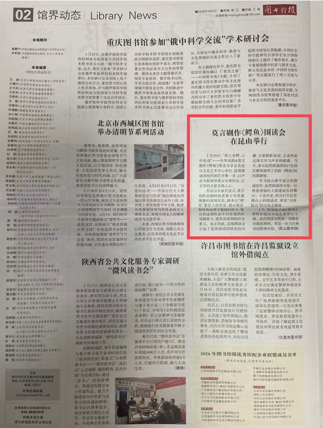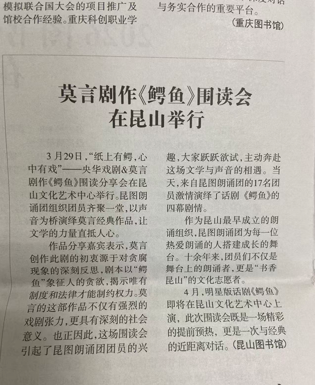 【图书馆报】莫言剧作《鳄鱼》围读会在昆山举行